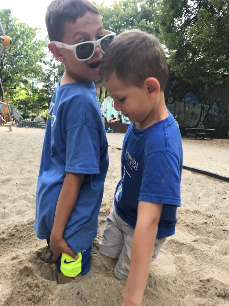 Meanwhile, Dave took the boys to our park. After I got home, I realized we had an Amazon.de order delivered. Since we weren’t home, they left it with a neighbor. I climbed up four flights of stairs to the top level to ring our neighbor “Schwartz” to get the package. I knew it was with her because the email from Amazon explained that it had been left with “Schwartz”. Something else different here in Berlin.