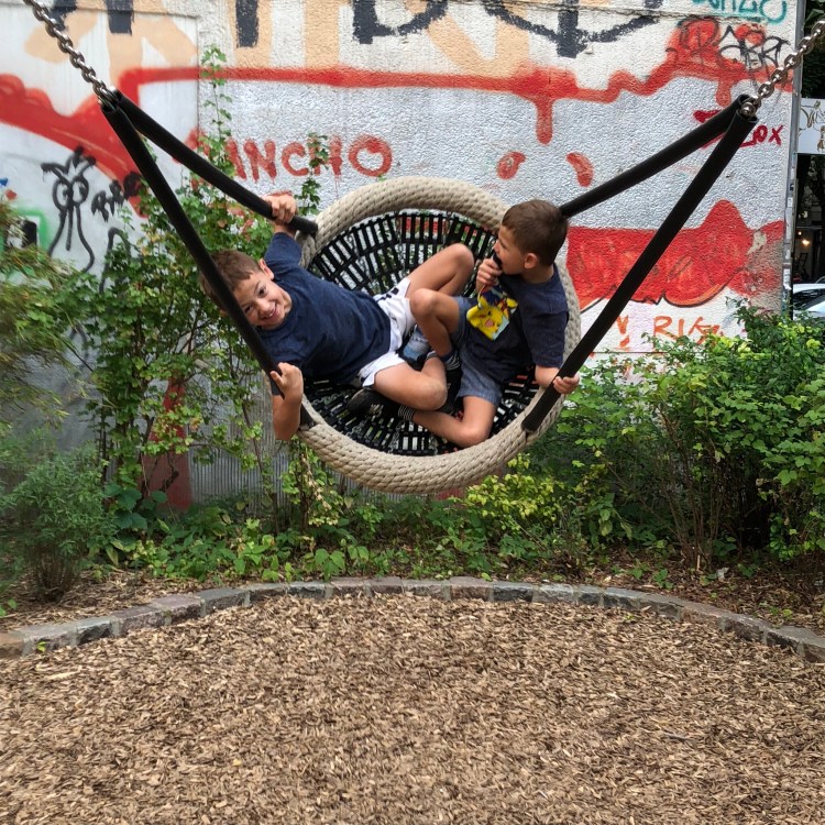 In the meantime, Dave took the boys to the two playgrounds Ben and I visited the other day, where they had tons o’ fun together.