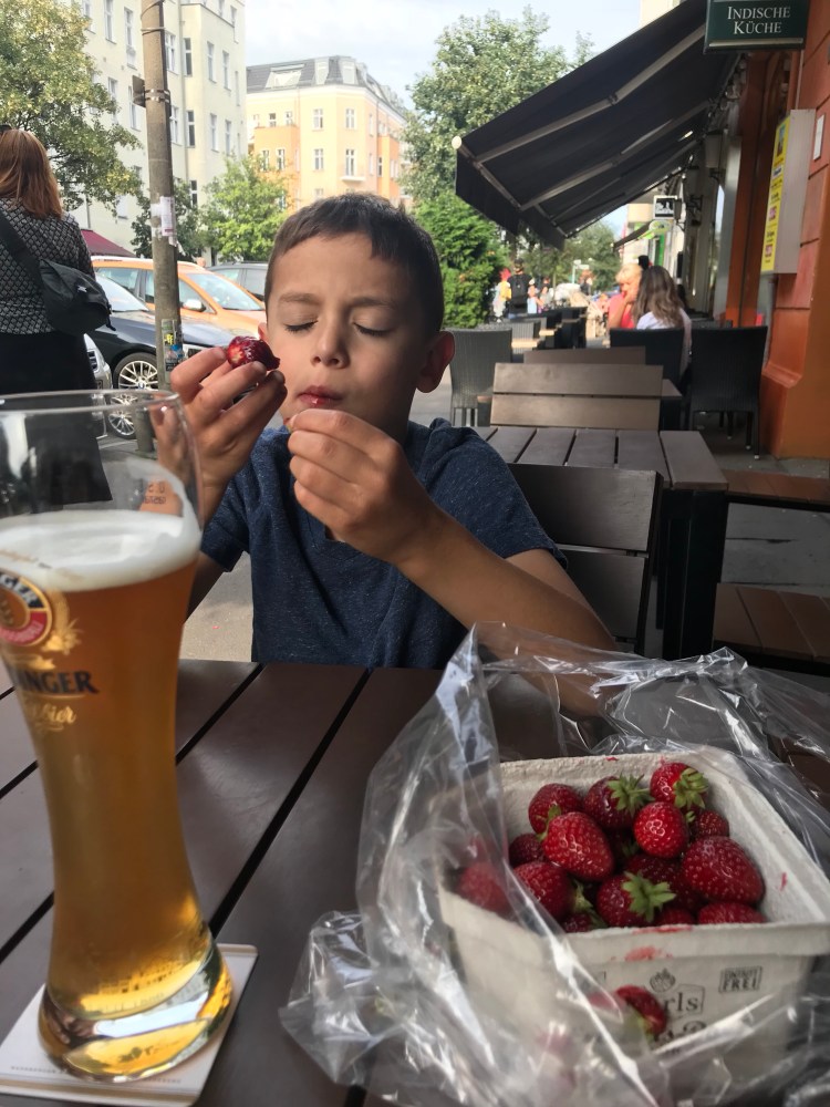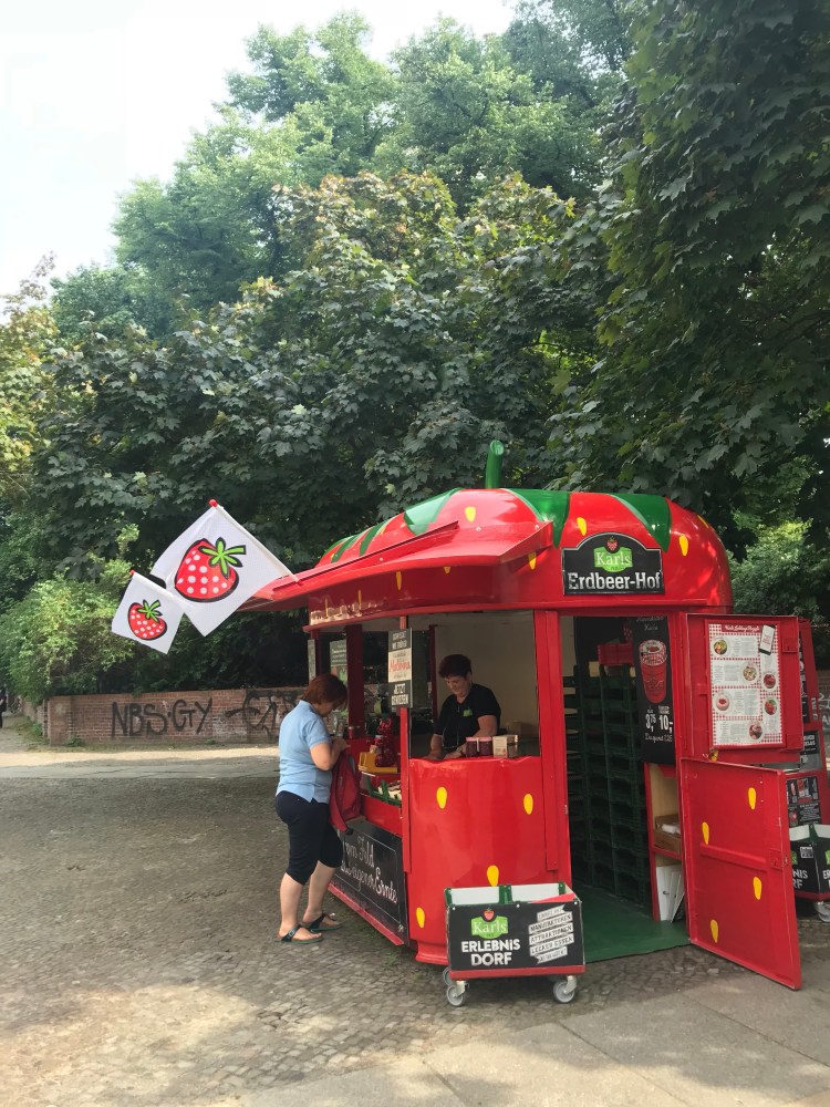 On my way home, feeling hot and tired and needing a break, I bought some farm fresh strawberries at the Karl’s kiosk. We remember coming here from prior trips to Berlin. The very best we’ve ever had!