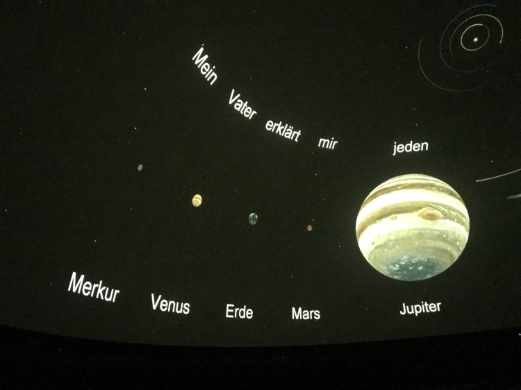 We had agreed to meet at the Planetarium to see a movie at 2:30. We got there at 2:00 (taking the S 41 one stop to Prenzlauer Allee) and discovered there was no 2:30 movie, but a show on planets at 3:00, but only in German.