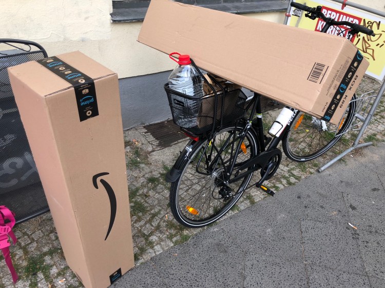 We headed home and daddy was right outside the apartment door with his bike about to go to DM (drug store) to pick up some things. I got the mail and had a notice that two Amazon packages had been delivered to a store down the street as we weren’t reachable. I sent the info and picture of the notice to Dave to ask him to pick them up. They were huge, but lightweight. They were flower boxes for our terrace. My plan is to full then with red geraniums once we get back from England next month.