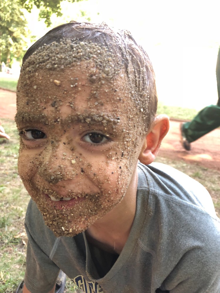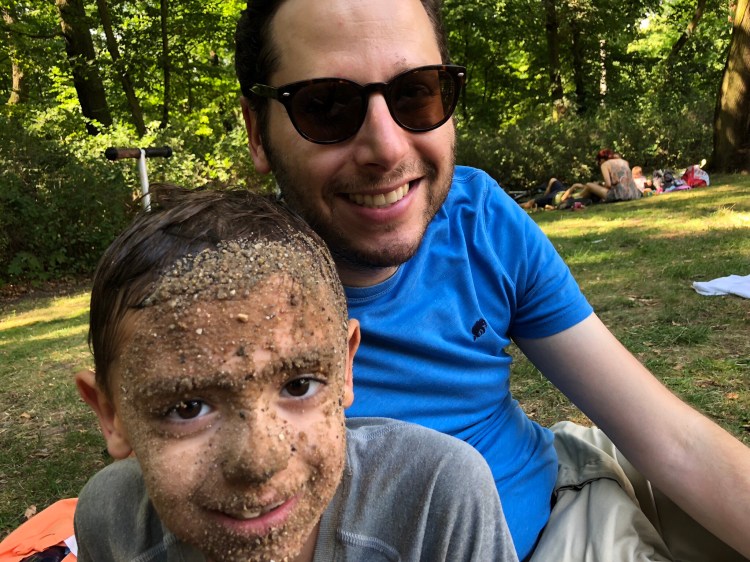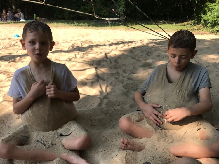We got there and found a little oasis in the forrest, with kids of various sizes playing in the water. Several with either no clothes on or only in their diapers. There were also two playgrounds with sand that the boys were immediately drawn to.