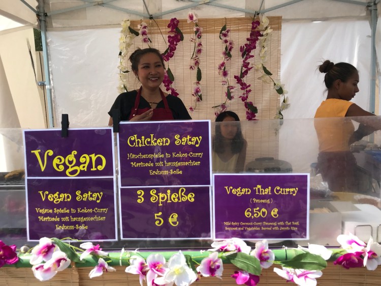 {BBQ, vegan curry, empanadas, arepa and radlers for lunch from Mauerpark}