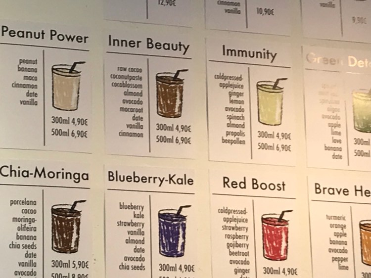 After class, I swung by The Juicery, my favorite smoothie shop (so far) in Berlin. Dave and I have been before and agree it’s wonderful.