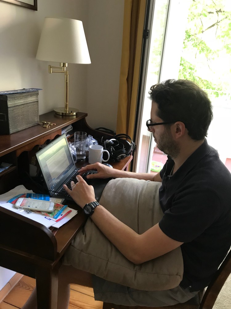 The boys and I had dinner at home while Dave went to three stores looking for fans. None to be had, except for the expensive Dyson fans and some mini fans that plug into the USB connector. He bought two of those. Not sure if they’ll really help or just have a placebo effect. Either way, we were grateful. Tomorrow is going to reach 95!