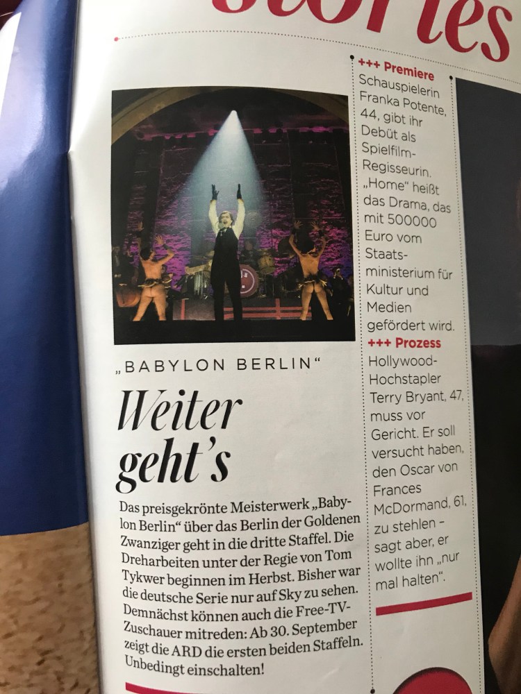 And an update on one of our current favorite shows, Babylon Berlin. If you haven’t watched it, check it out on Netflix. It follows the life of a police inspector in Weimar era Berlin.