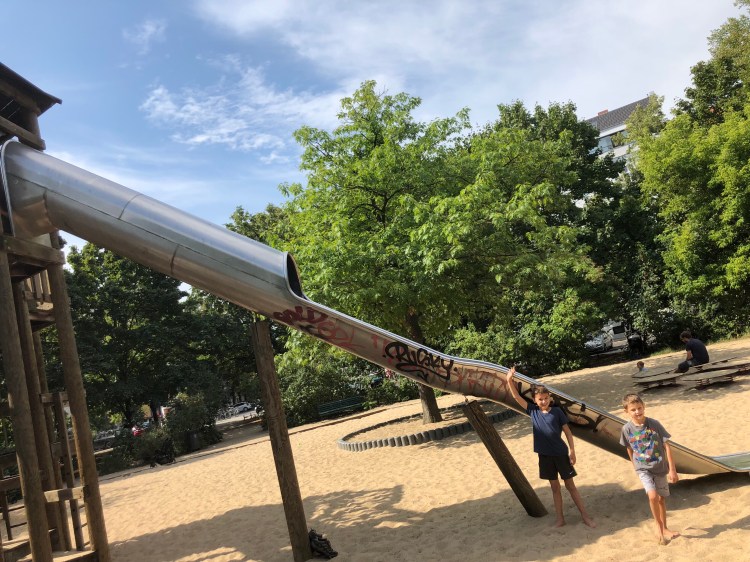 I woke and my knee was still really bad. So I convalesced while Dave took the boys to the playground at Arkonaplatz.