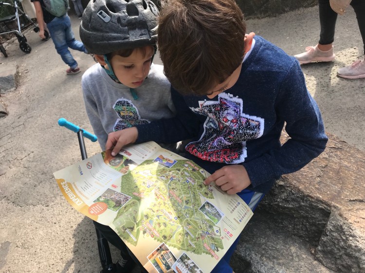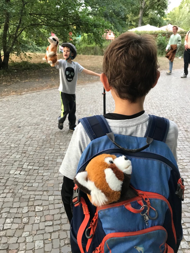 Wait. Yes. Those are dogs at the zoo. At Tierpark, dogs are allowed. And scooters, too! (We had to check Isaac’s scooter at Zoo Berlin.)