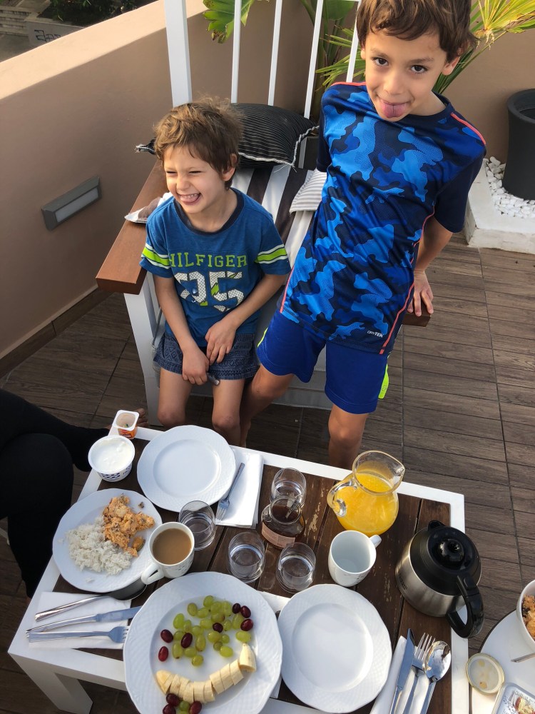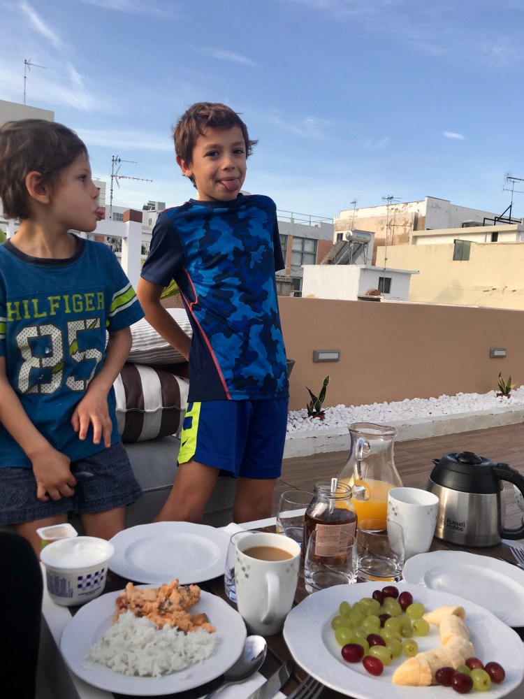 {family breakfasts on the roof of our rental}