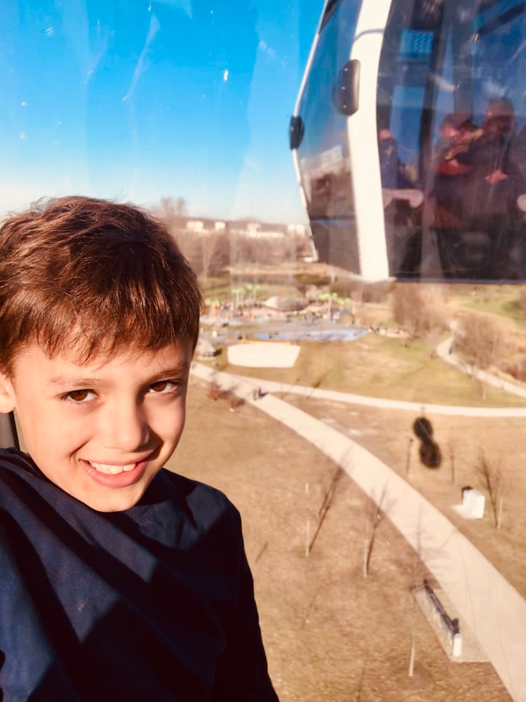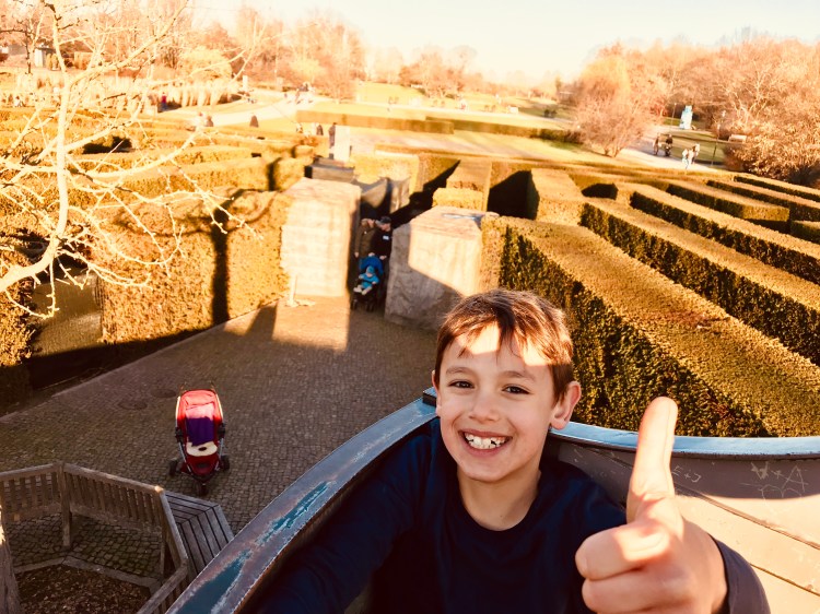 They then took the train one stop to Gesundbrunnen and went to the park, Volkspark Humboldthain, there. At the park, they went to several playgrounds and climbed up to the Flak Tower III, which is the remains of a WWII anti-Aircraft gun blockhouse tower.