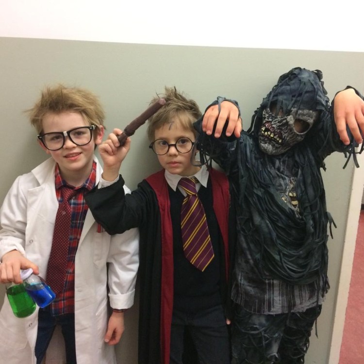 Whatever its beginnings, our boys were simply thrilled to wear their costumes to school for the day.