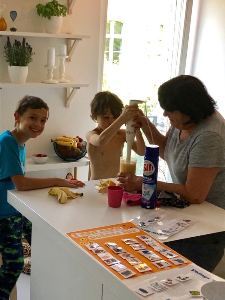{Making breakfast smoothies together}