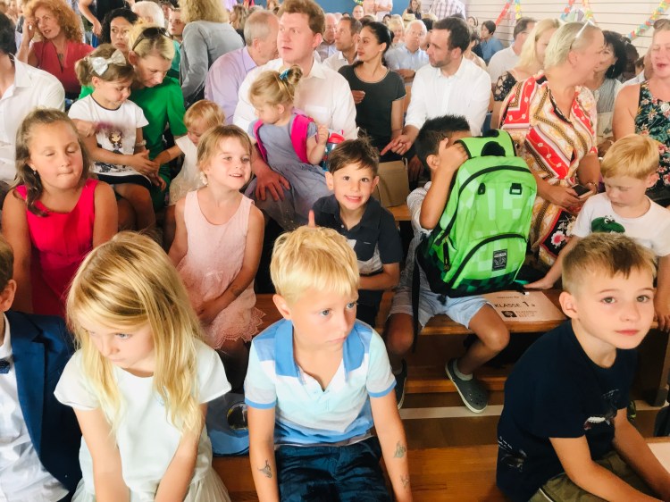 For the ceremony, each child brought his or her new backpack with them to signify entering school with new lessons including learning how to read and write. Academics are not stressed at an early age in Germany, unlike in the US. Children’s character, social skills and manners are more important here.