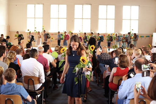 {The ceremony was held in the school’s Turnhalle, or gym}