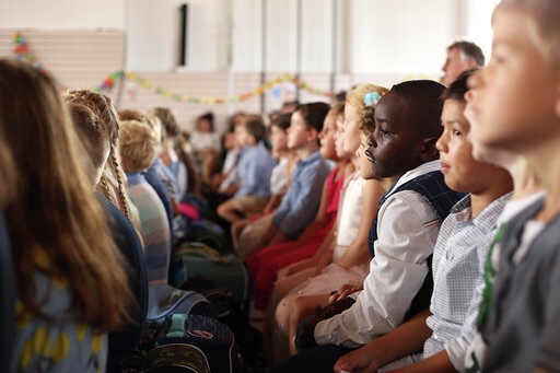 {Isaac’s class – can you spot Izzy’s profile – patiently sitting during the ceremony}