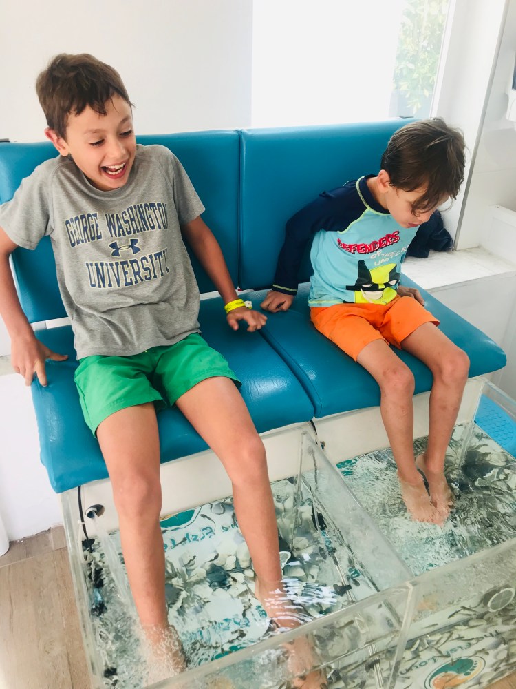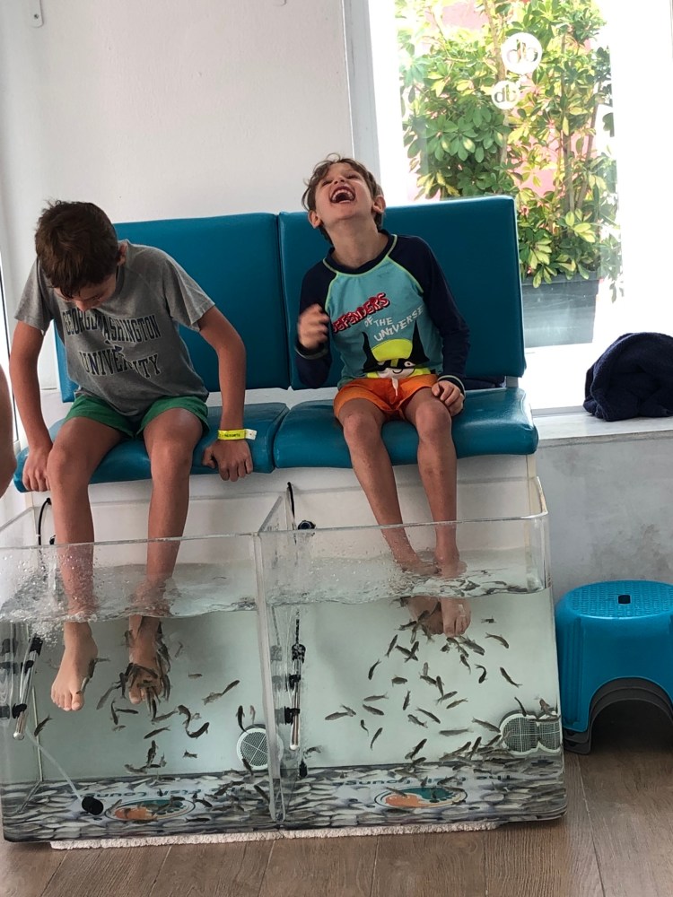 One day was quite rainy, so the boys visited the resorts fish spa. Ha!