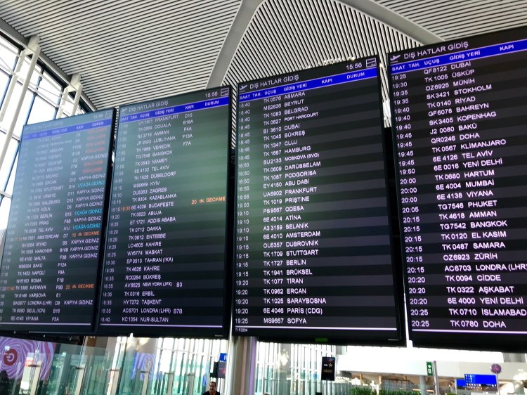 {Inside Istanbul’s new airport. It seemed as though one could fly to anywhere in the world.}