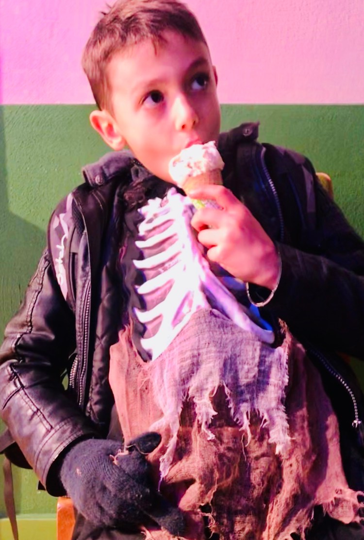 Ben then went to a friend’s house for a party, while Isaac stayed with Dave and I and handed out candy at our door.
