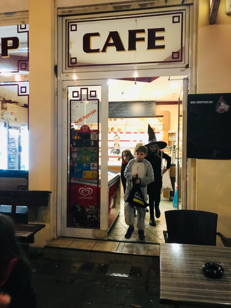 Next, a group of neighbors met in the Hof (courtyard) and trick or treated in the surrounding apartments. It was an amazing mix of children of all ages coming together to collect as much candy as they could.