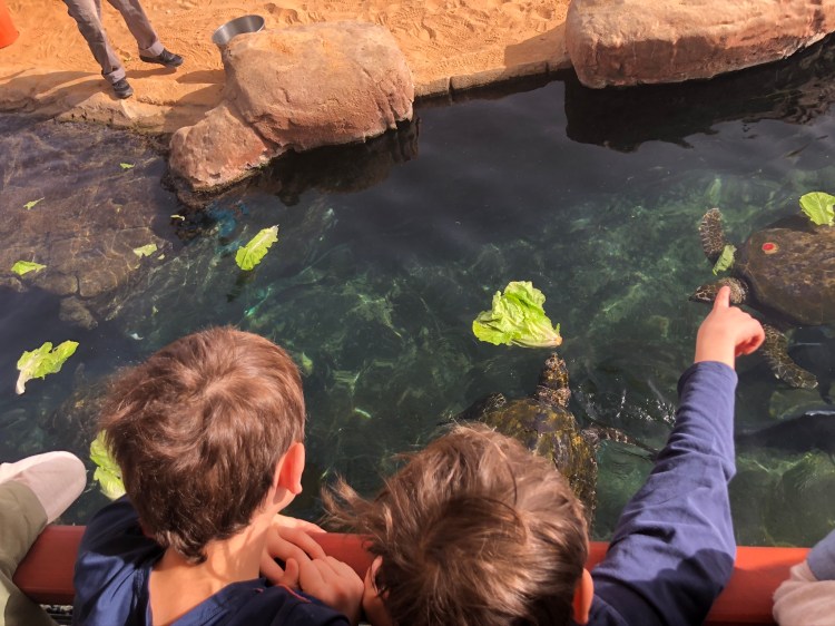 What started with a very long line to get in, led to watching the sea turtle feeding and spending over three hours in the underwater observation windows two stories under the surface of the Red Sea.