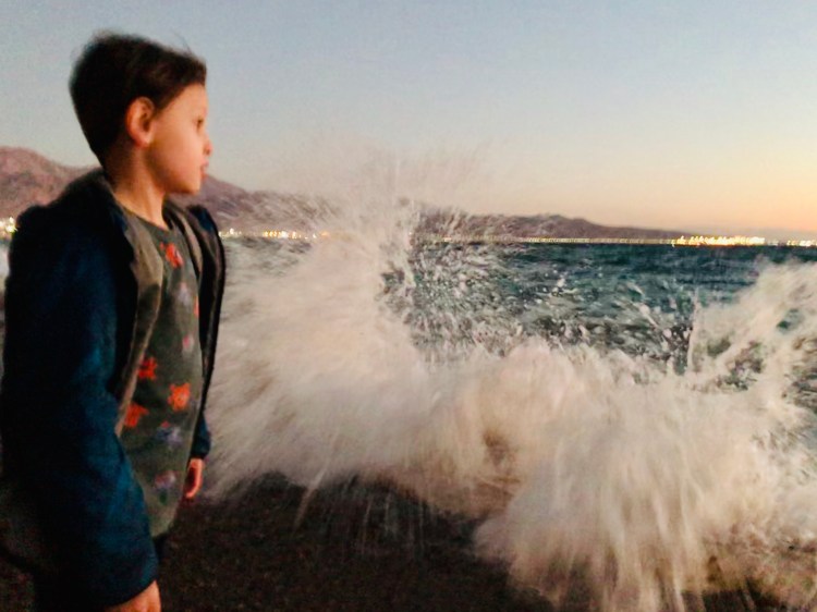 At night, we strolled along the boardwalk by the Red Sea, which became quite wavy and rough.