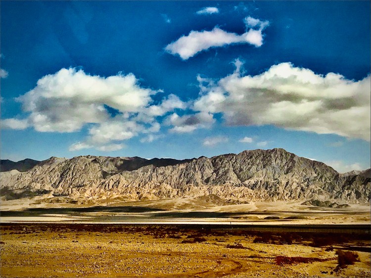 Driving in the desert was incredible. The landscape was so unique to me. There were high mountains, then low plateaus. The earth changed from a rich orange to a pale grey-white and back to a yellowish-orange again. For miles, all one could see were only roads and a few cars.
