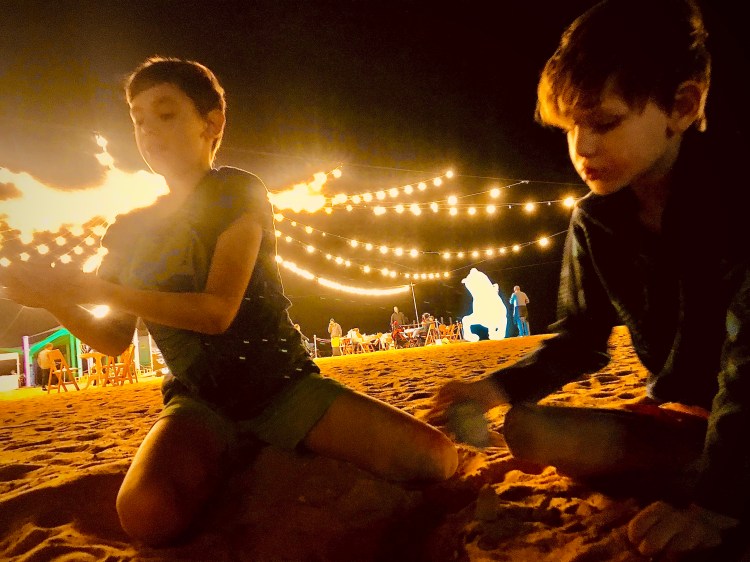 It started getting dark around 5:00, so we stuck around a little longer while the boys played in the sand and then headed up to the hotel for dinner.