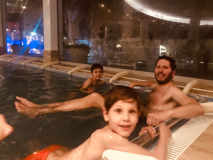 So later at night when the spa was quieter, Dave and I casually strolled into the spa with the boys and snuck them in the pools for a few minutes before anyone could complain or kick us out. The boys were thrilled. We explained to them the difference between a rule and a law and that sometimes parents help their kids break rules, but only rarely. They felt like James Bond completing an impossible Mission.