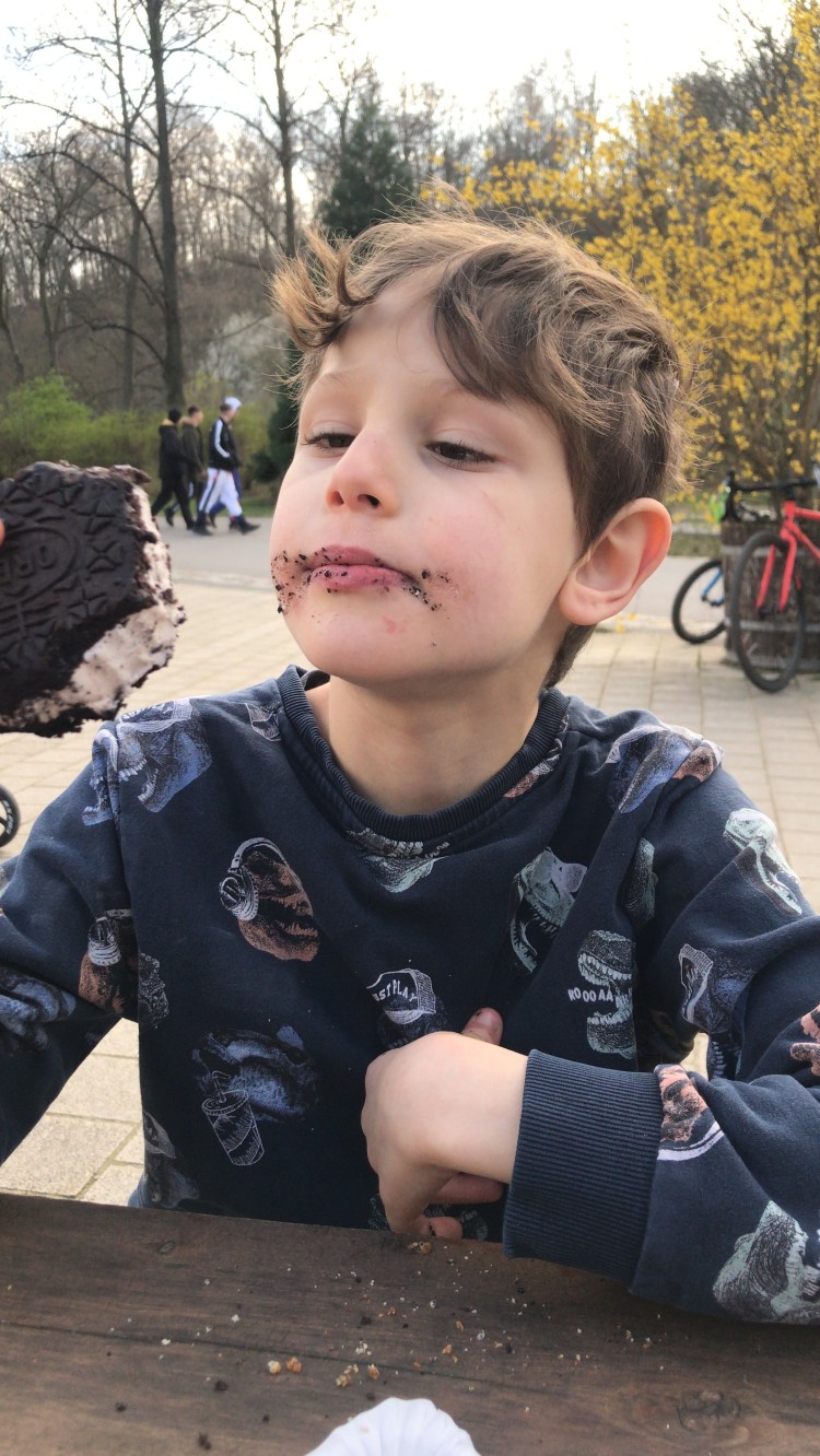 Later in the afternoon, I took the boys on a walk to the River Spree to get some exercise and sun. On the way, we stopped by the little bakery/market/candy shop next to our apartment for burger and “camel balls” gum. Ha!