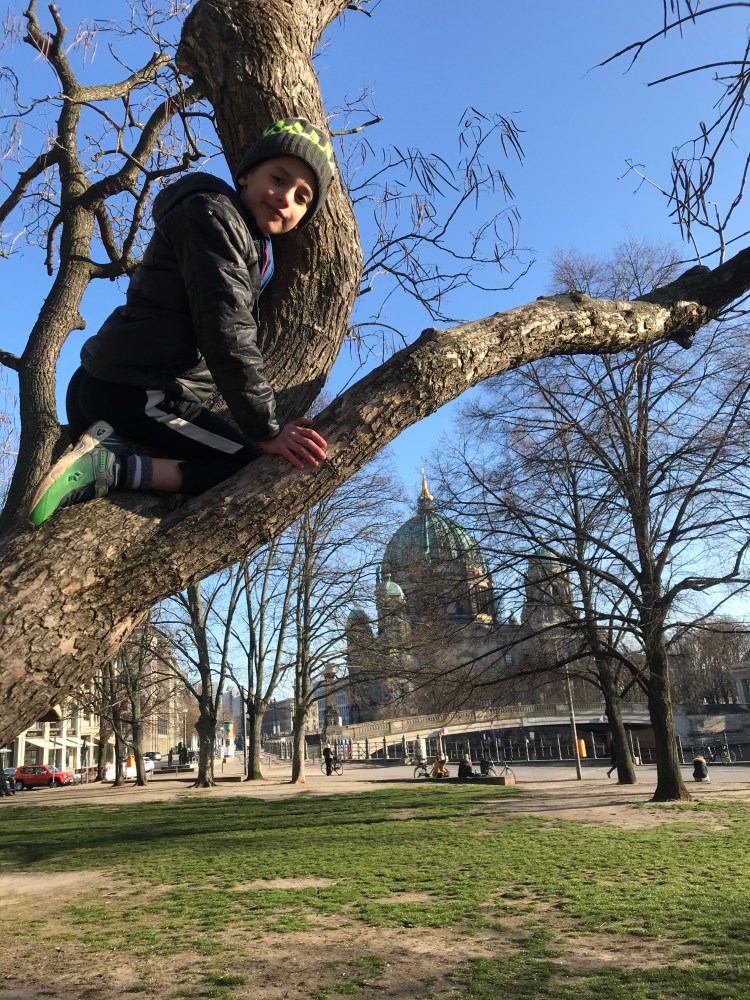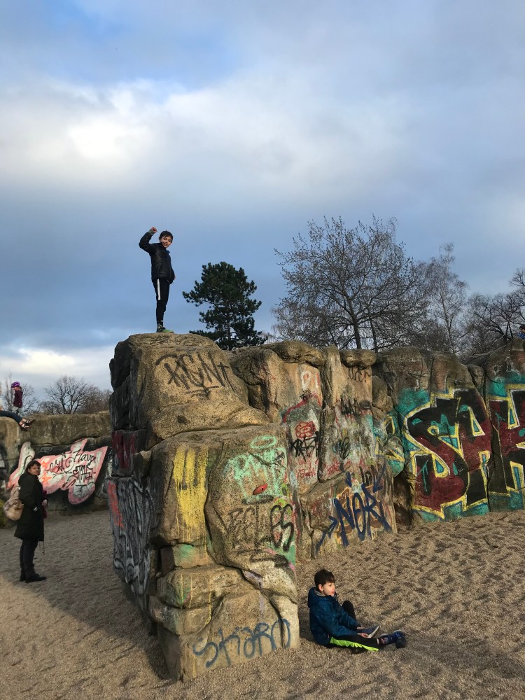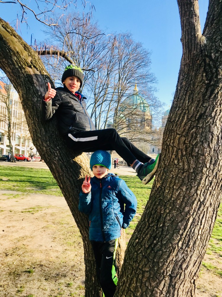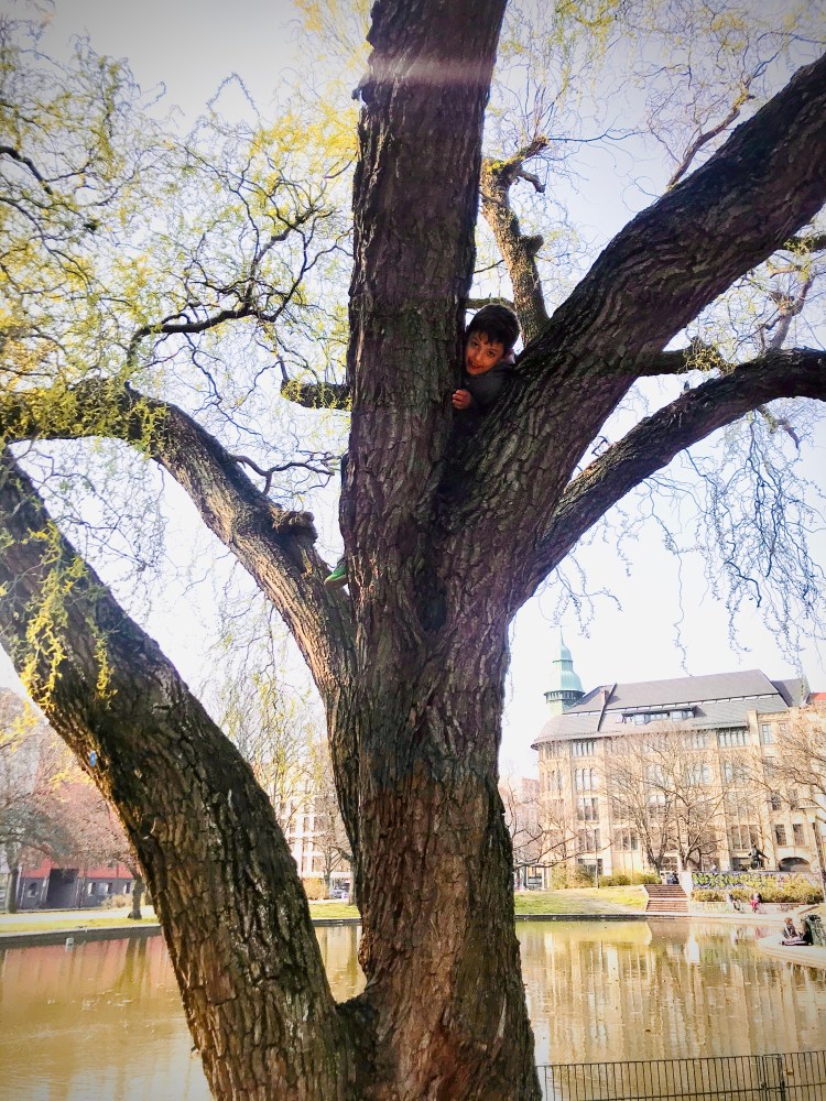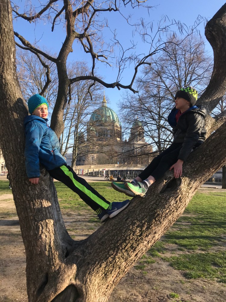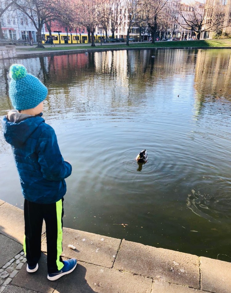 Later in the afternoon, Dave and I took the boys to Volkspark (people’s park) Weinberg at the end of the street to let off some steam. We stayed out for about an hour feeding the ducks and climbing trees.