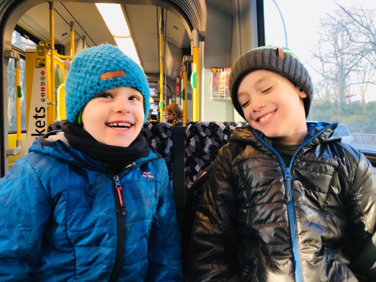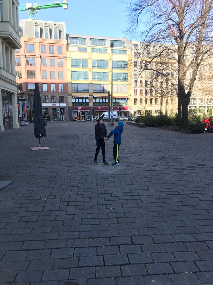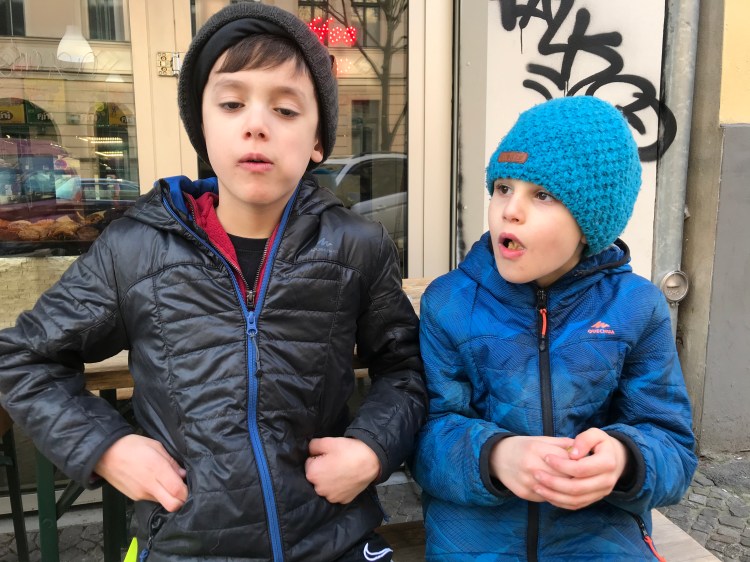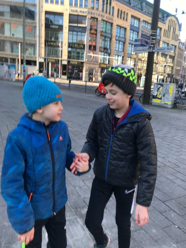 As we continued towards Kollwitzplatz, we bumped into our Berlin building neighbors (originally from Atlanta) who had just come from Brammibal’s Donuts – the boy’s favorite donut shop in Berlin. It was open and would be a great place to go as it would require a 4K round trip walk from our apartment.