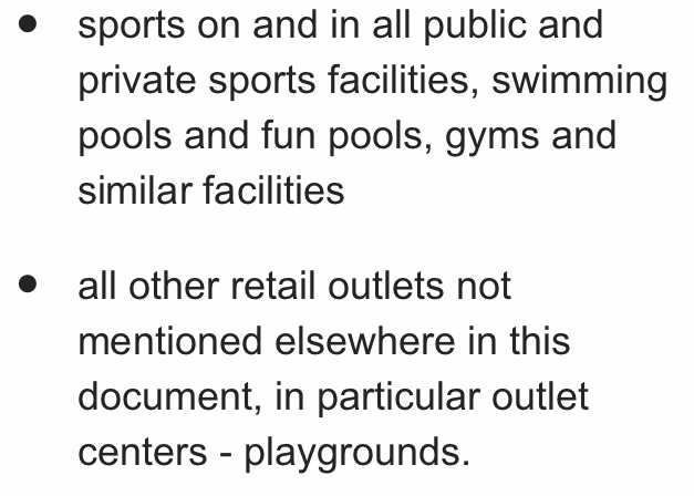 Sadly, all the gyms and yoga studios are closed (along with my sanity) as well as the playgrounds! For those who care, prostitution, brothels and similar establishments have also been officially shut down during this time.