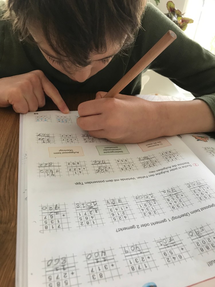Since Isaac has no official grades in school until third grade, we tried to focus on doing something in each subject this week including German, English, math, art and Sport.
