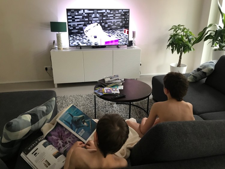 The boys connected with some of their Berlin and American friends via What’s App and played Minecraft together.