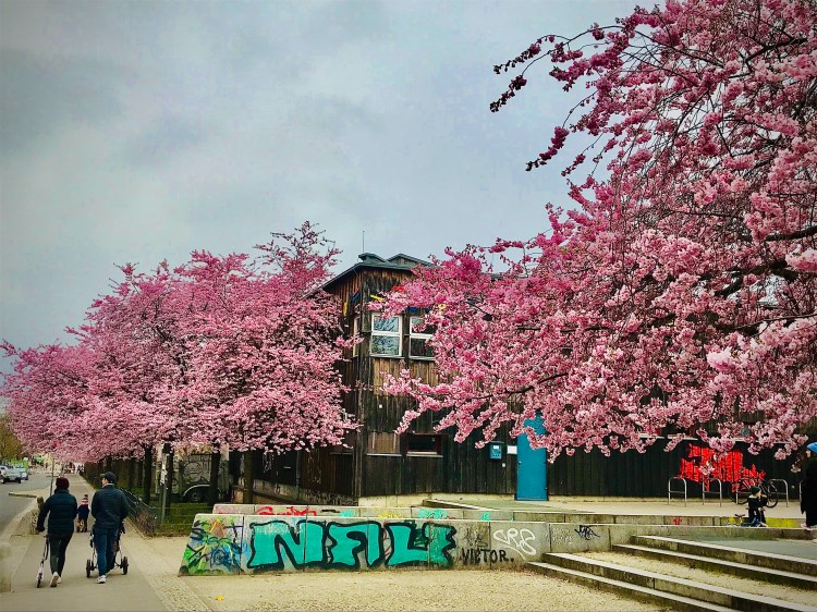 {Cherry blossoms along Schwedter Straße}