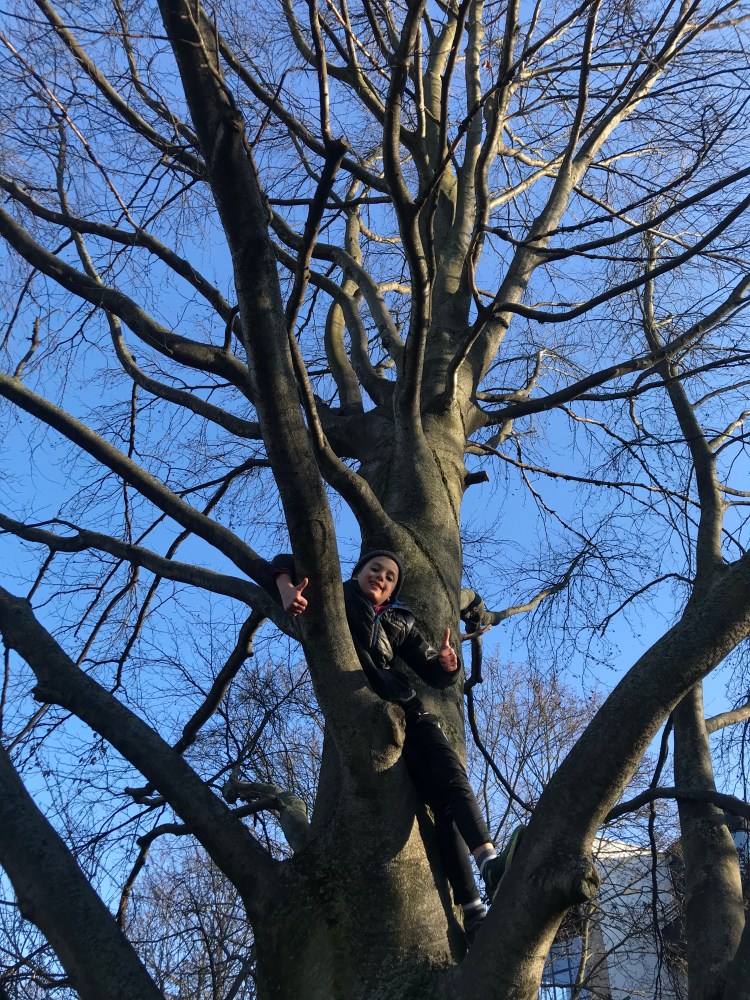 {Tree climber at Volkspark Weinberg}