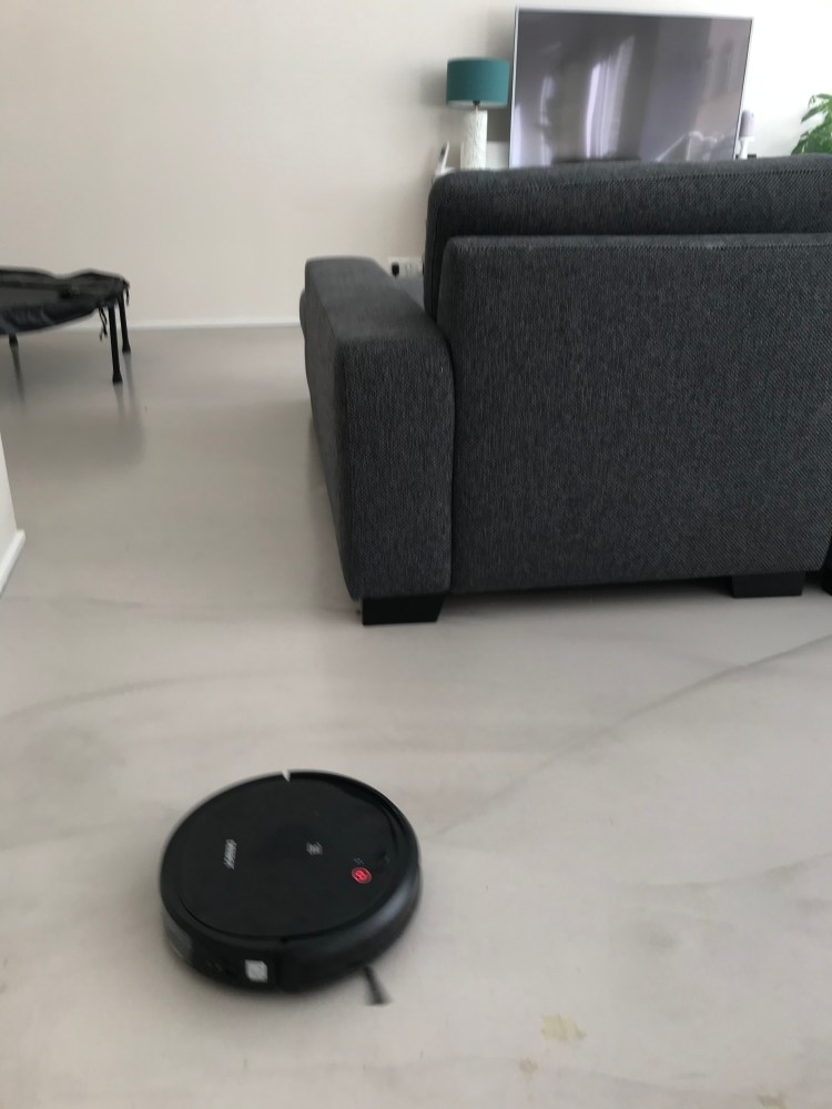 {Everyone pitched in to clean the apartment today, including the robotic vacuum}