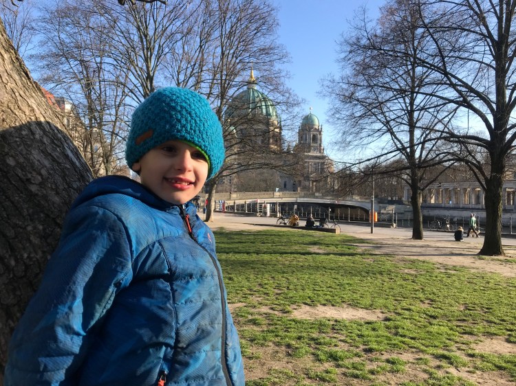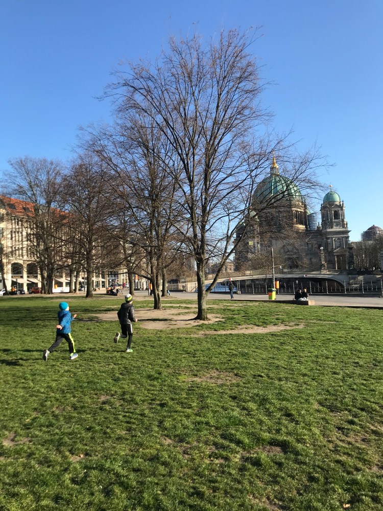 {Letting off some steam in James-Simon-Park with the Berliner Dom in the background}