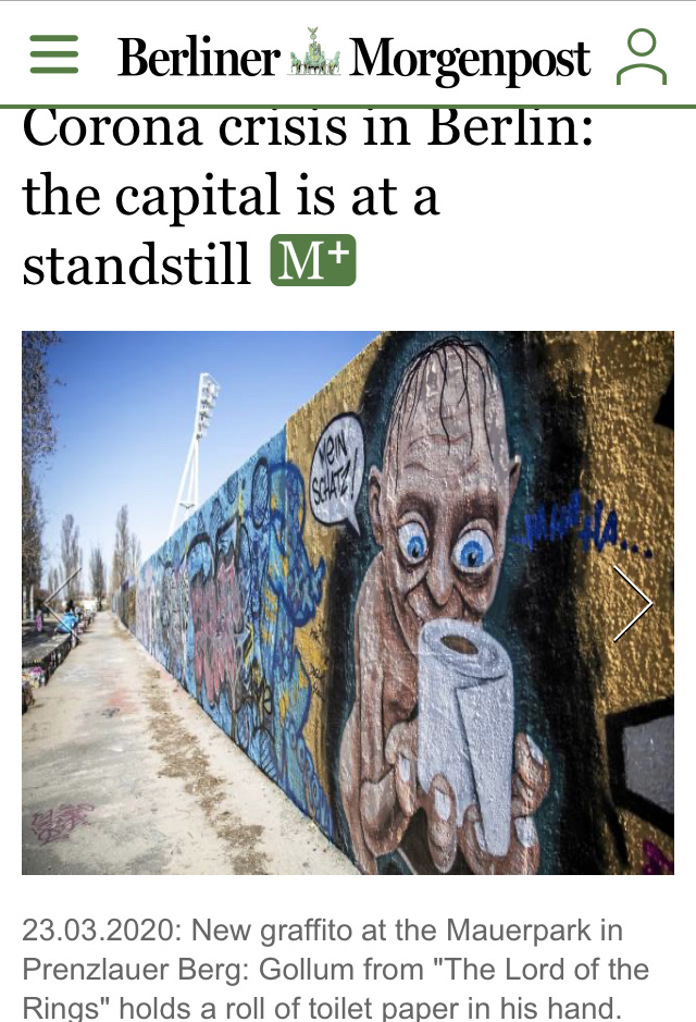 It seems that even though Berliners are allowed outside for exercise (alone or in groups of two, unless you are a family), they do not want people congregating. That is something new.