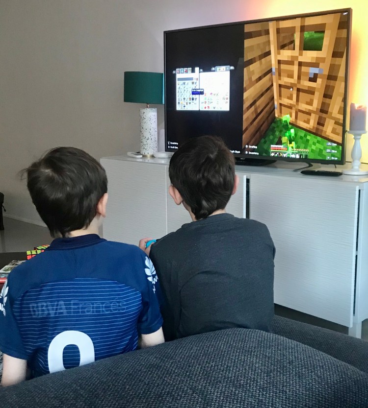 {Boys playing Minecraft online and via WhatsApp with Jaden, our neighbor from the States}
