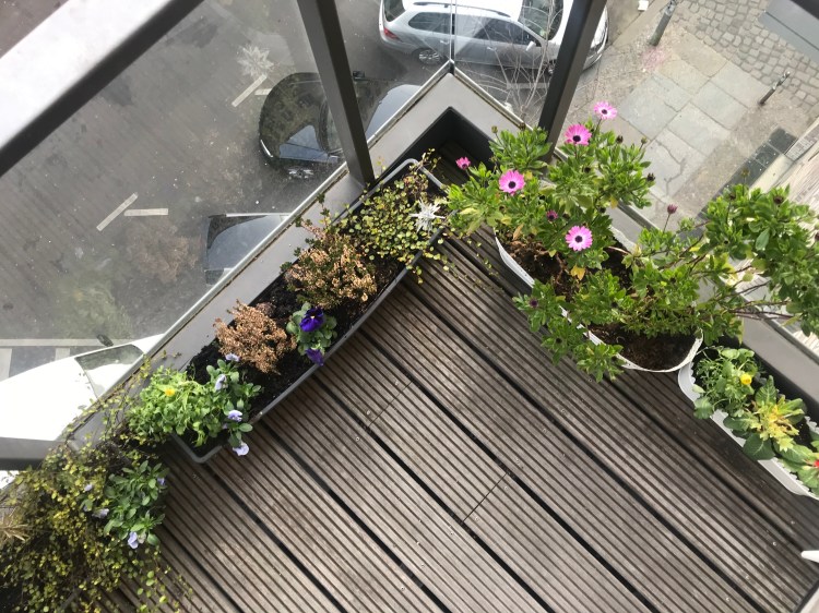 I have also found cheer in having fresh flowers in the apartment and by planting some new ones in our boxes on the front balcony.