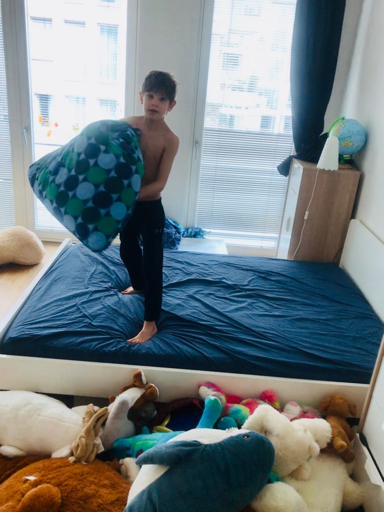 {Boys helping by changing their own beds}