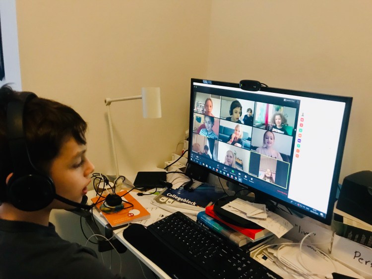 After doing some math homework, Ben jumped on a Zoom call with his classmates. It was chaotic, but really nice for the kids to connect. The boys were most interested in solving their Rubix cubes together.