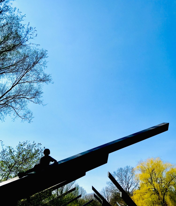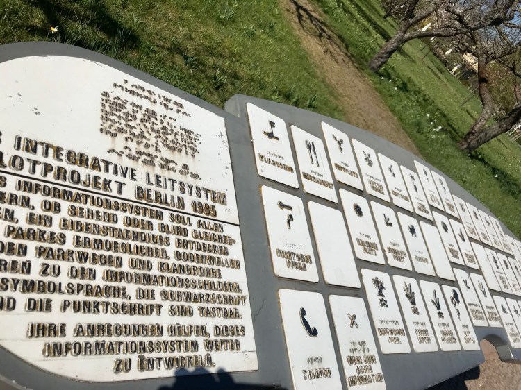 Our goal was to find “the hill”. (See Britzer Garten: Part I for details.) Along the way, we spotted the giant fish in the pond and heard baby birds crying in the reeds along its bank.