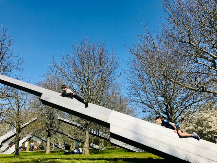 Dave and I set up our picnic blanket and the classic picnic of sandwiches at the base of the bright green hill, while the boys ran, rolled and chased each other down the hill.
