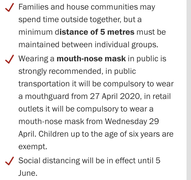 Restaurants and stores have all opened. Masks are required in stores and all public transportation. We expect these requirements as well as safe social distancing to continue until at least July 5.