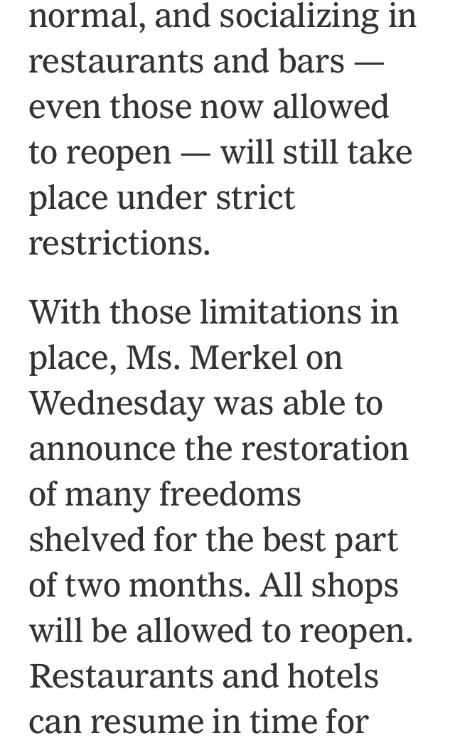 After meeting with the heads of all sixteen states today, Merkel has allowed more restrictions to be loosened for us here in Germany. We will proceed with caution, but I honestly can’t wait for the Bier Gartens to be open once again!