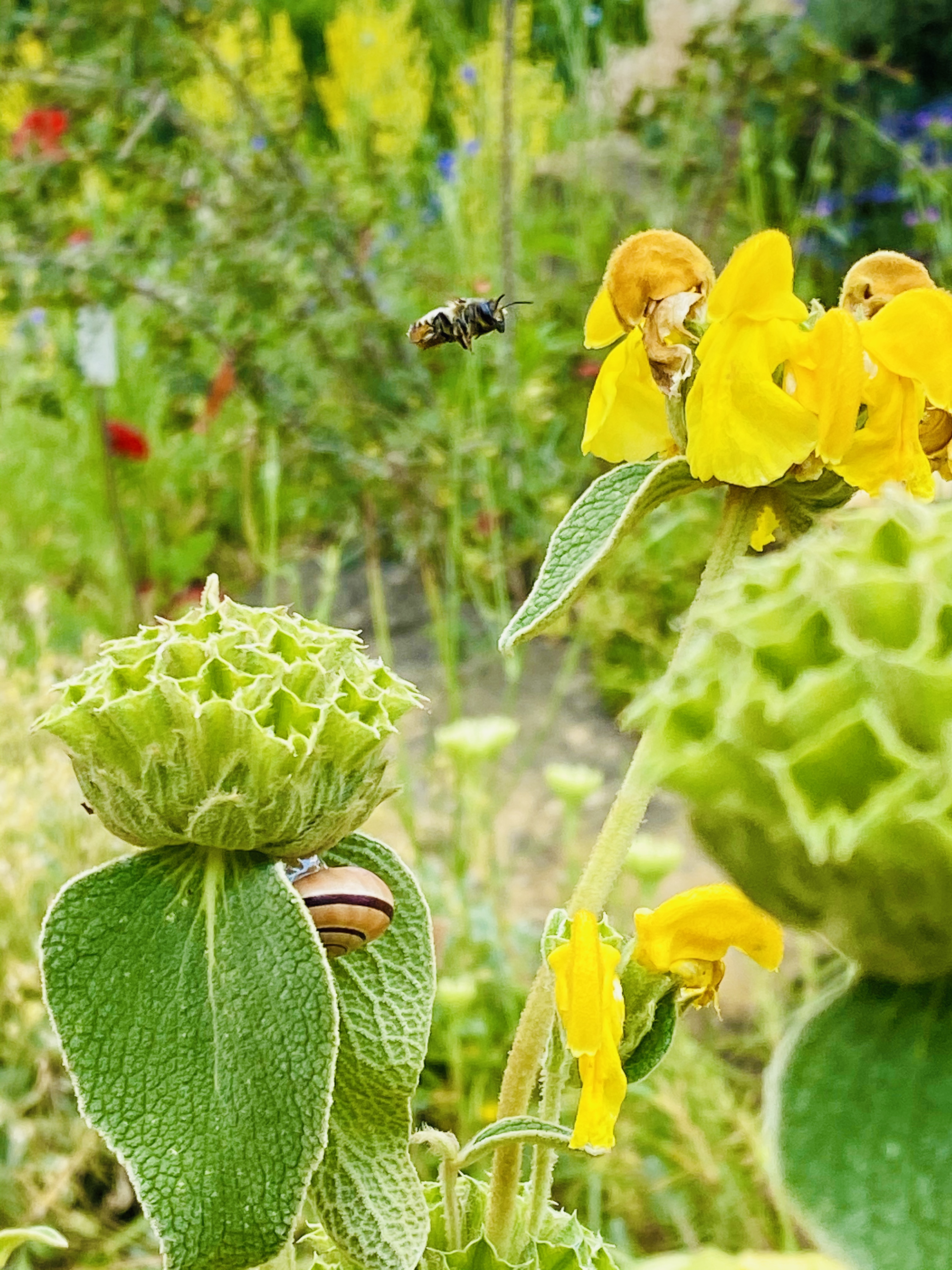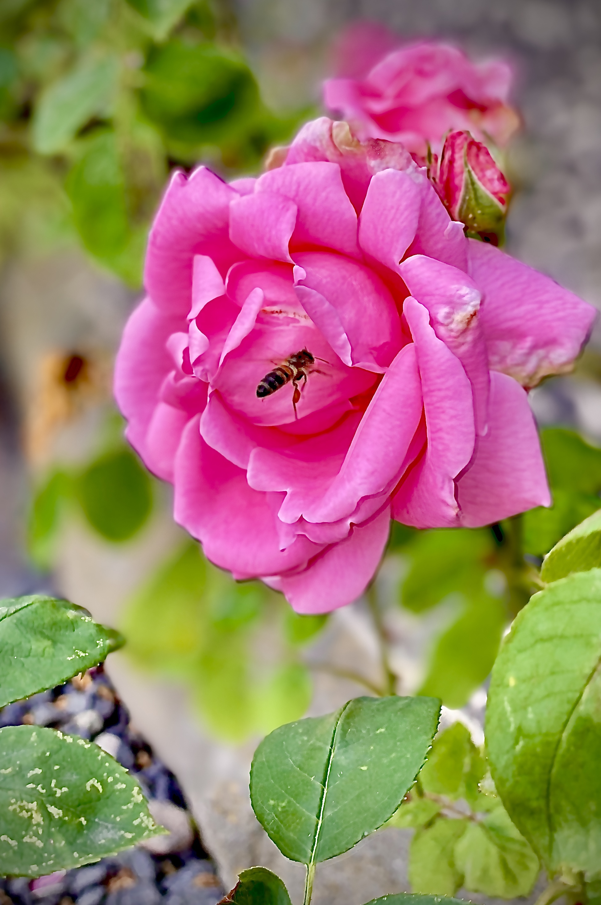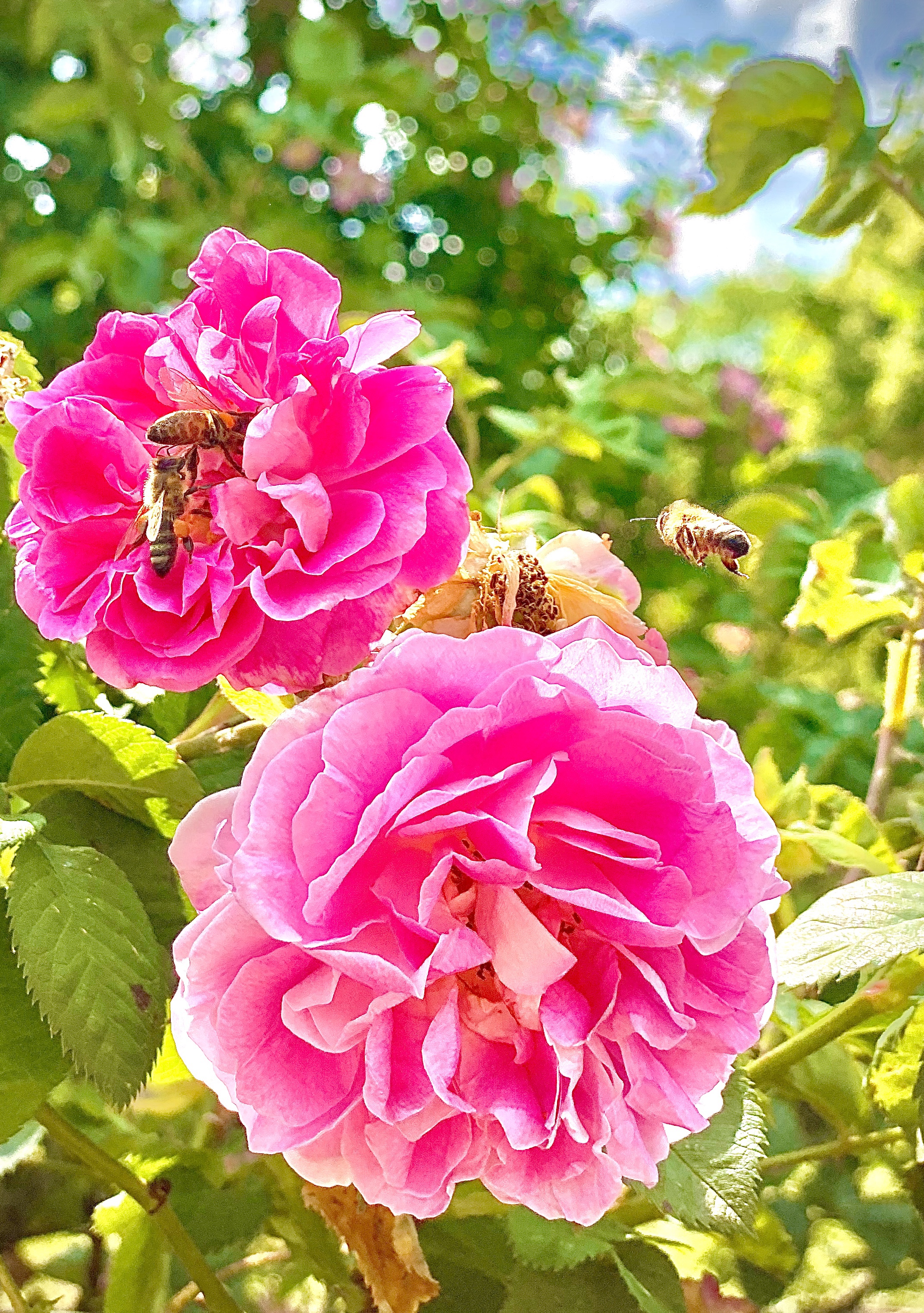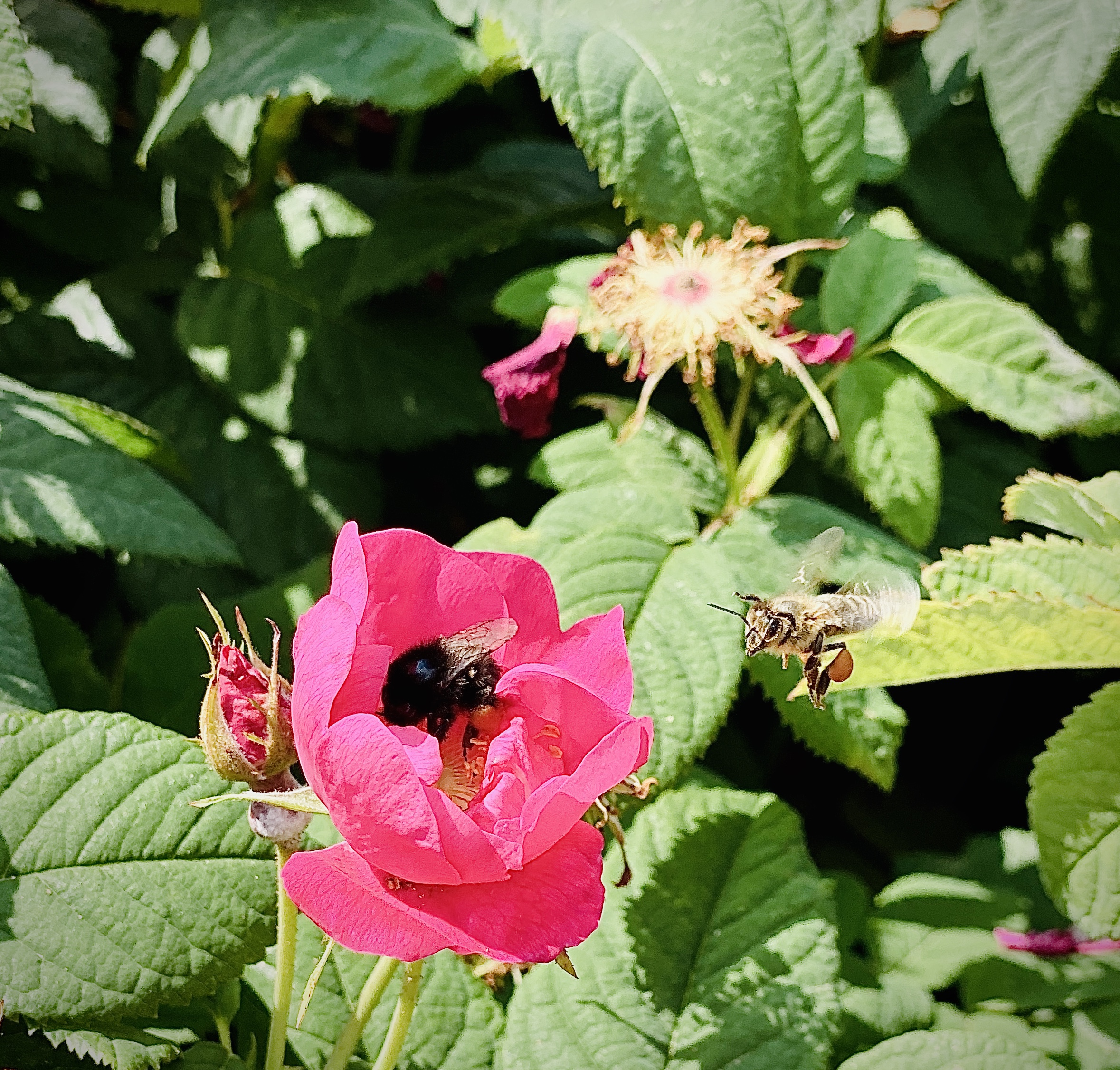 I came across the vibrant rose garden and was delighted to see so many bees busy at their work.