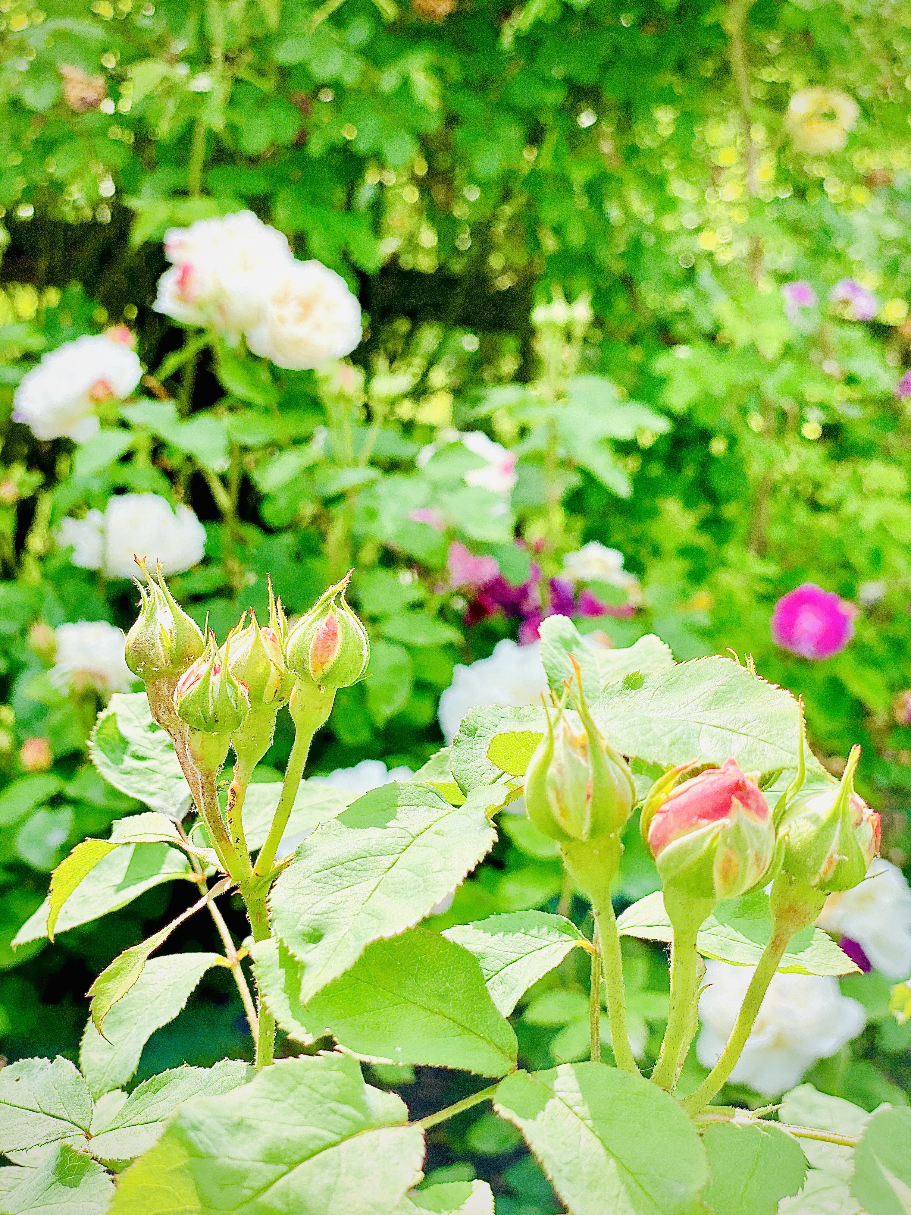 Even though it was past the spring season when most of the flowers emerge from their winter rest, the garden still offered so many smaller, more delicate flowers to see. I found delight in their lightness contrasted with the bright green leaves and stems.