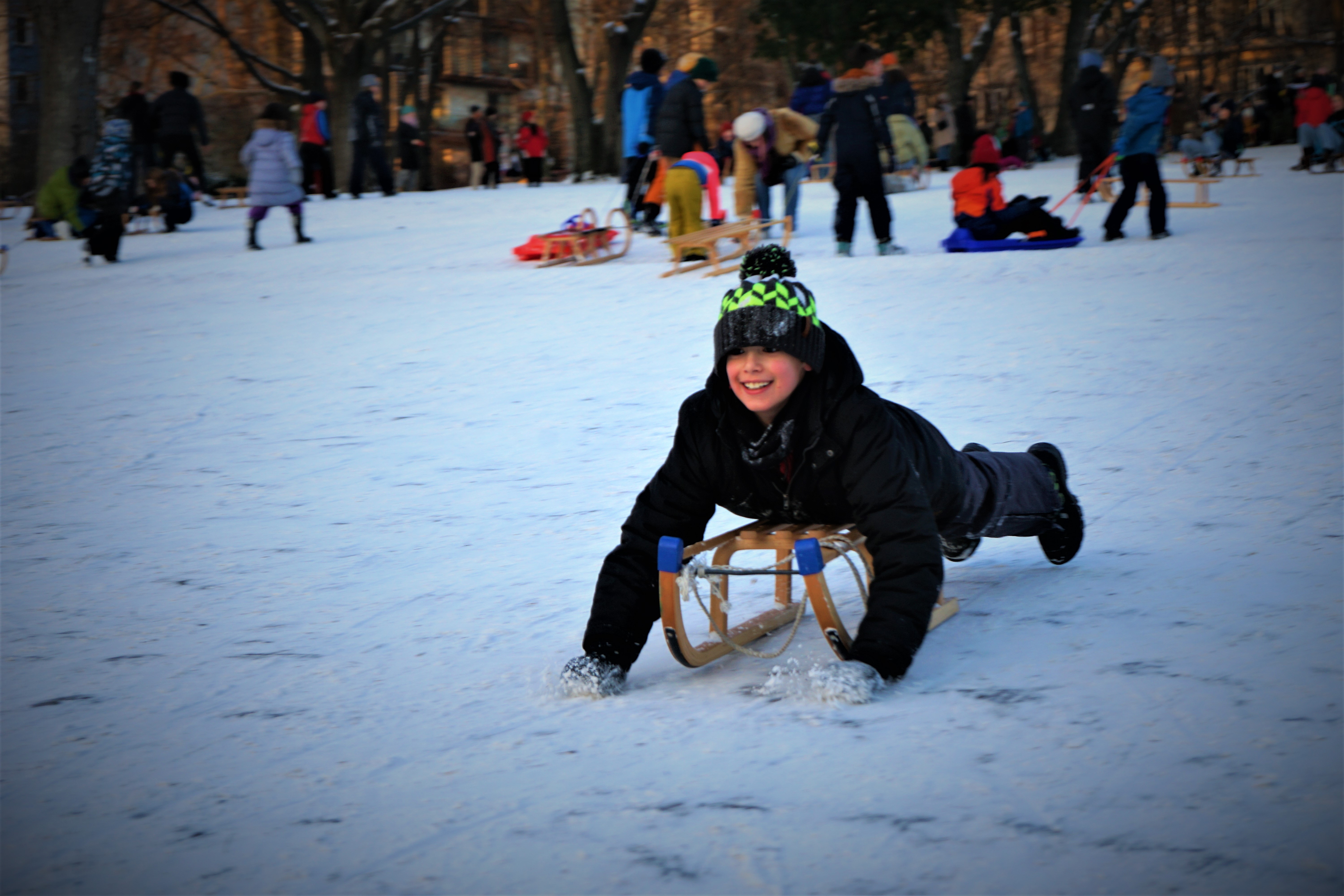 As I’ve written before, we have a beautiful park at the end of our block, which has turned into a sledging paradise.